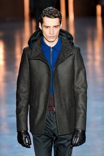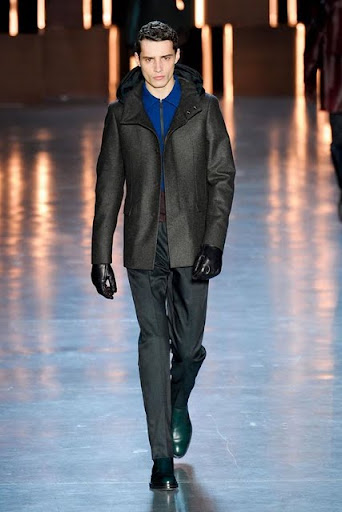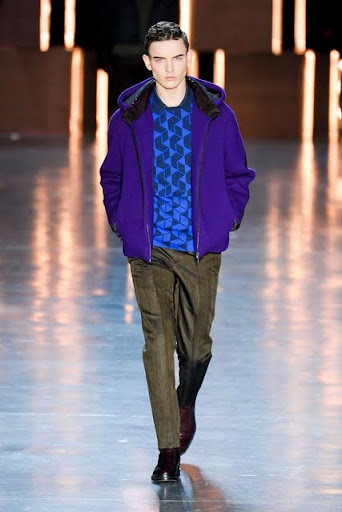 В целом материалы для мужских курток были по большей части приглушенных цветов, особый пиететом у дизайнеров в этом году пользовались разные цвета голубого, серо-зеленый, хаки, бежевый.