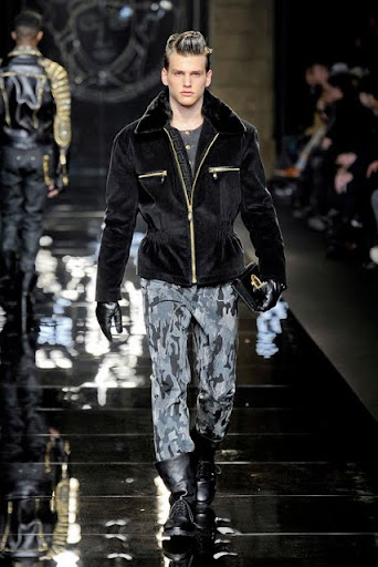 Самой яркой и разноплановой из представленных на сегодняшний день, безусловно, является коллекция Versace. Здесь есть все: и классический мужской костюм, и элементы барокко, и леопардовые принты, и роспись по ткани, и затянутые в кожу рокеры.