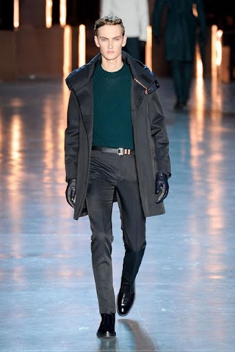 Однозначно хорошую работу представил Филиппо Скаффи для одной из старейших английский марок Daks. Продуманное сочетание “клетки” и кожи, стеганых деталей и бархата, длинных шарфов крупной вязки и ясных, но все же драматичных, преувеличенных силуэтов – все смотрится органично и просится в руки, вернее, на плечи.